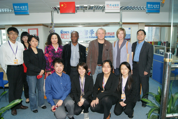 今天我们期盼已久的加拿大英属哥伦比亚大学的国际招生顾问代表(图后排右三)终于到来。会谈中,他给我们详细介绍了大学的校园环境、硕士入读费用及课程、申请条件、奖学金申请条件、会谈结束后,顾问们相继对他提问,包括哪个是名牌专业、如何在校园申请兼职、进入该大学的要求等。再次感谢英属哥伦比亚大学对我公司留学工作的支持。
