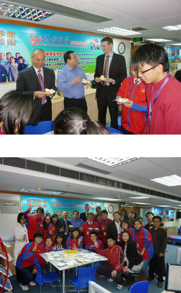 2011年02月22日,来自美国INTO集团代表到访香港学联集团中国区总部——侨谊留学-香港学联集团中国区总部。与侨谊留学同事进行院校培训,以及参与侨谊留学每月生日会。