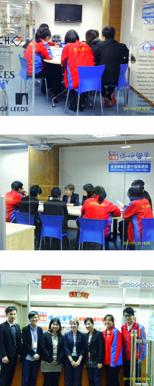 2011年3月22日,来自英国John Leggott College的国际招生代表Helen Lee来访侨谊留学-香港学联集团中国区总部,介绍该学校的情况,以及招生要求.由英欧部同事一同接见。