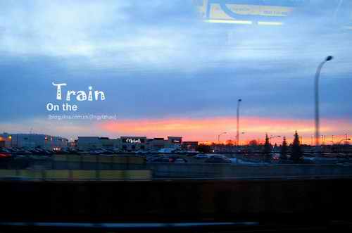 多伦多的地铁全名叫做Toronto Transit Commission,简称(TTC),平常人们就叫这个Subway或者train。这是在地铁上拍到的窗外的景色。很有原野的气息吧。一条条平行的铁轨慢慢伸向远处,夕阳的余光映出的晚霞和还没全部变黑的蓝天构成了一副多么唯美的图画!
