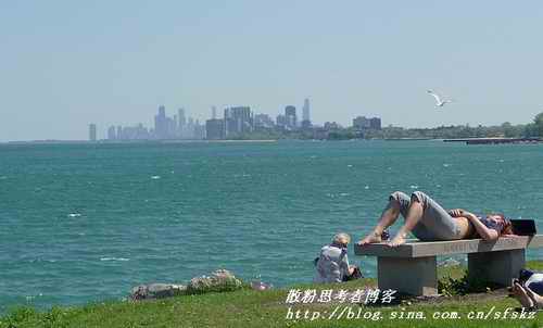 西北大学的湖边公园,是个优雅休闲的去处,从那里可以看到芝加哥市中心的高楼大楼。