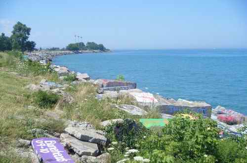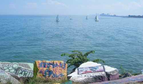 西北大学有一个独特的地方,一定不可以错过。那是靠湖的一个公园,沿着湖岸堆满形态各异的巨石。而这些巨石表面涂盘了艺术作画和文字。学生们用各种文字在石头上写下爱情的誓言,这个地方可谓是美国大学最浪漫的一角。