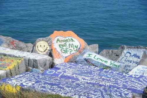 跳看一块块岩石,也是一件很浪漫的事,这里有各种文字留下的爱情誓言。最近的那块石头上就是用韩文写的。还看到用中文写的“XX我爱你”。