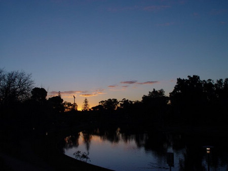 还是学校后门的 River Torrens,不过是落日余晖的景了。