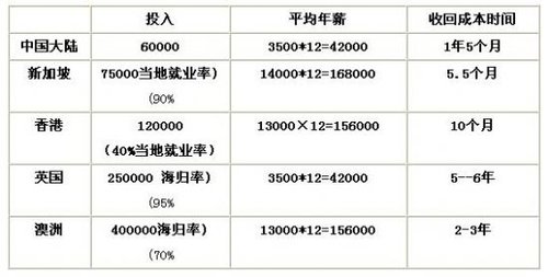 从上表可以看出,新加坡的投资回报率遥遥领先于其他地区。专家介绍说,伴随着出国留学的平民化和理性化,尽管汇率降低带来留学费用大减,但也并不是每个家庭都能支付起最高可达上百万元的留学费用,而像新加坡这样留学费用相对便宜的国家,自然而然就成为工薪家庭孩子出国的第一选择。