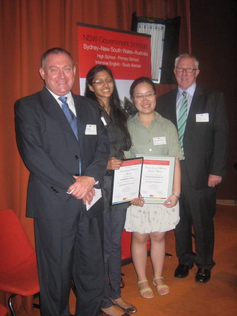 2009年新南威尔士教育部颁奖仪式(左一:高中校长,左二:同校另一获奖者,右二:胡正阳,右一:州教育部悉尼西南区负责人)