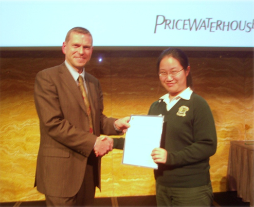 11,12年级,我都报名参加了新南威尔士大学与普华永道(PwC——全球四大会计师事务所之一)组织的PWC商业比赛和经济比赛。在11年级两项比赛我分别都获得二等奖,而12年级则获得了一等奖,还拿到75澳元商业比赛的奖金。那天,经济老师开车送我去参加颁奖晚宴,他告诉我,20年前,学校里也有一位同学也获得这个奖项,当晚是当年的澳洲财政部长给她颁奖,而我是20年来的第二个。