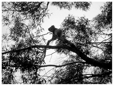 骑著单车去找Koala,瞧我手指的尤加利树上就有二只野生Koala喔!