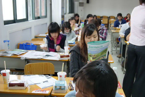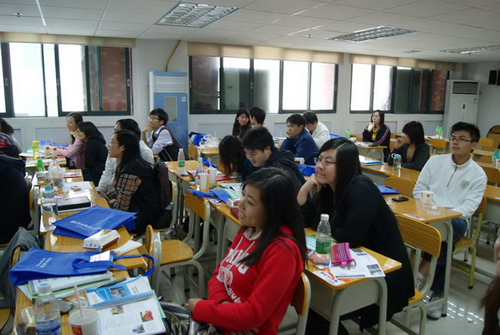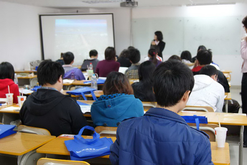 一切准备就绪,由侨谊留学英国部资深顾问LYNN兼做主持,跑到学生当中,向大家民意调查了一番想出去国家后,从而拉开这场讲座的帷幕。