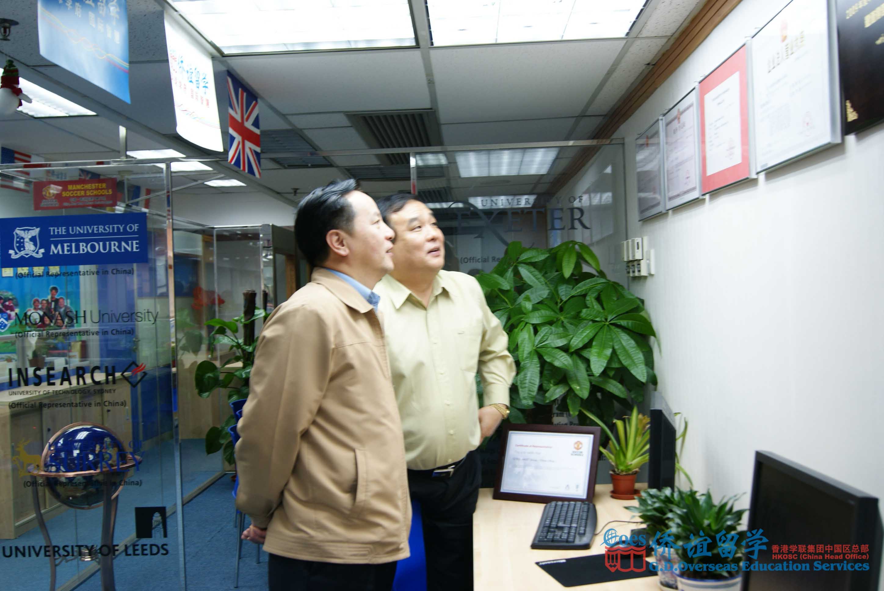 林强先生带领客人参观了侨谊留学暨香港学联集团中国区总部自去年11月扩大规模发展壮大后新装修,新形象的办公环境,详细为客人介绍了侨谊留学的发展情况及主要成绩。双方还就留学行业的发展前景,社会影响进行了深入探讨。