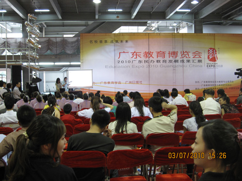 2010年首届广东教育博览会在锦汉会展中心正式亮相。本次教博会除了是广东首届教育博览会之外,也是“广东民办教育成果汇展”。举办机构希望借此为平台,表彰有出色贡献的教育办事机构,我们侨谊留学便是其中贡献者一员。