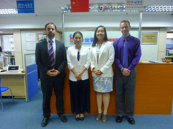 2012年9月18日下午,INTO集团的南区总监Tyler和中国及港澳地区总监Gordon来侨谊留学-香港学联集团中国区总部到访,与侨谊留学的顾问会面更新最新的院校动态。以下是两位总监和侨谊留学总经理、副总经理的合照。
