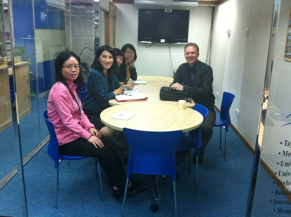 2012年10月23日,澳洲Monash University的国际学生招生官Tim Gawne到访侨谊留学。由公司副总经理兼Monash驻中国办公室的代表谭慧娟女士亲切会见。双方就学校最新资讯和国际生新动态作友好交流。