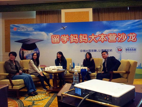 2013年1月19日,承中信银行的邀请,侨谊留学谭慧娟副总经理参加了由中信银行主办的“留学妈妈大本营”的讲座。并且邀请了已经成功赴澳读书的小小留学生江舜及其妈妈,与各位有意送孩子出国留学的家长们分享了她们的经历和过程中发展的各种趣事。活动现场跟设有即使互动环节,让各位感兴趣的家长,在QQ群上马上发问,现场在嘉宾作出及时的回答。