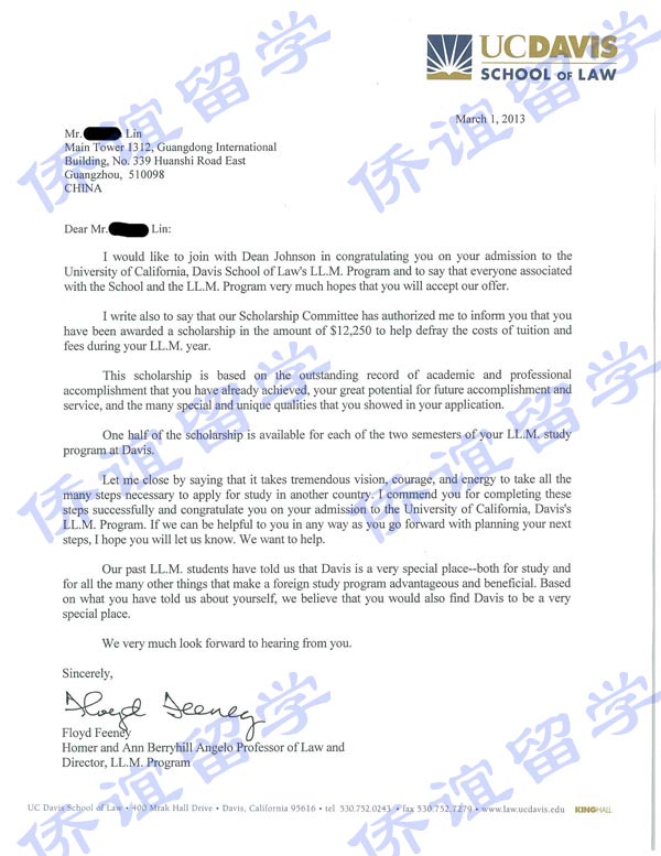 首页 > 奖学金 > 捷报!恭喜林同学获得UC Davis 录取通知书以及高额奖学金