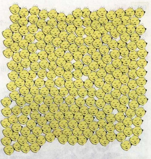 答案:那个生气的面具在第2行右边倒数第2个。人的感知系统总是能够很容易察觉异常的事物,而完全不需要系统地查找。这个原理被用于飞机、汽车等系统里,从而使它们的显示器能够随时随地地探测出任何异常的变化。