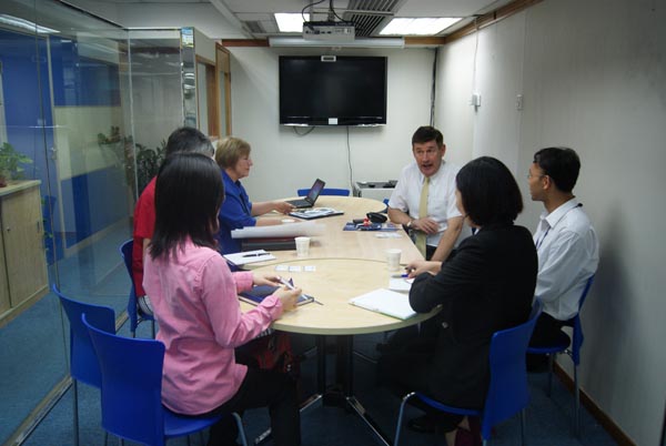 2013年6月3日,来自新西兰St Peter’s Cambridge的国际学生部经理Rosanne, St John’s College 的国际学生部学监Donald,及Sacred Heart Girls’ College的国际学生部总监Raeburne到访侨谊留学,为澳新部的顾问培训。