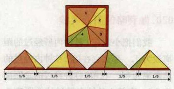 答案:你所要做的是把周长分成相等的5 份(或“n”份,这个“n”是你所要得到的蛋糕块数)。然后从中心按照一般切法把蛋糕切开。诺曼•尼尔森和佛瑞斯特•菲舍在1973年提供了证明,证明如下图。