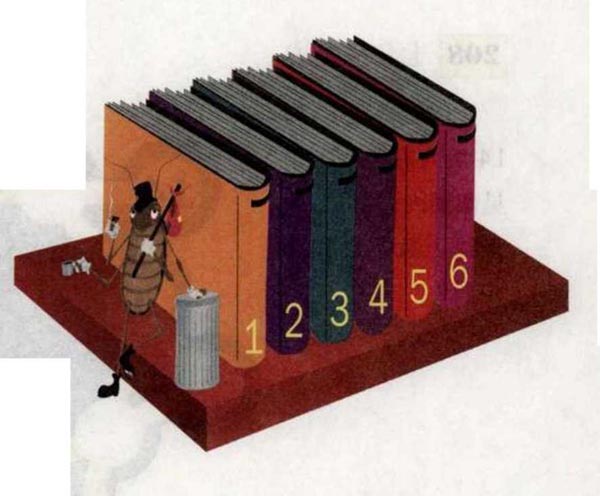 答案:书虫一共爬过了25厘米,如下图所示。它吃掉了4整本书以及第1本书的封面和第6本书的封底。