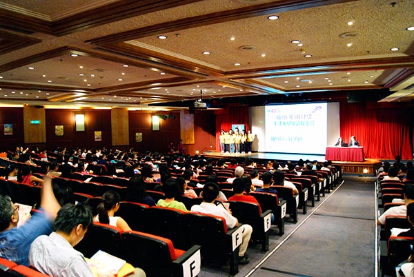 2013年7月1日,侨谊留学的总部香港学联举办的“学联动感夏令营说明会”在香港的九龙湾国际展贸中心隆重开幕!活动当日, 现场盛况空前,虽然香港发布三号风球警报信号,但是家长和学生依然无惧风雨准时到达会场。会场当日布置得高贵华丽,工作人员热情细心!说明会一共分五场, 每一场家长和学生都雀跃排队进场,在长达一个多小时的互动交流中,家长和学生都是兴奋地前来满足地归去。