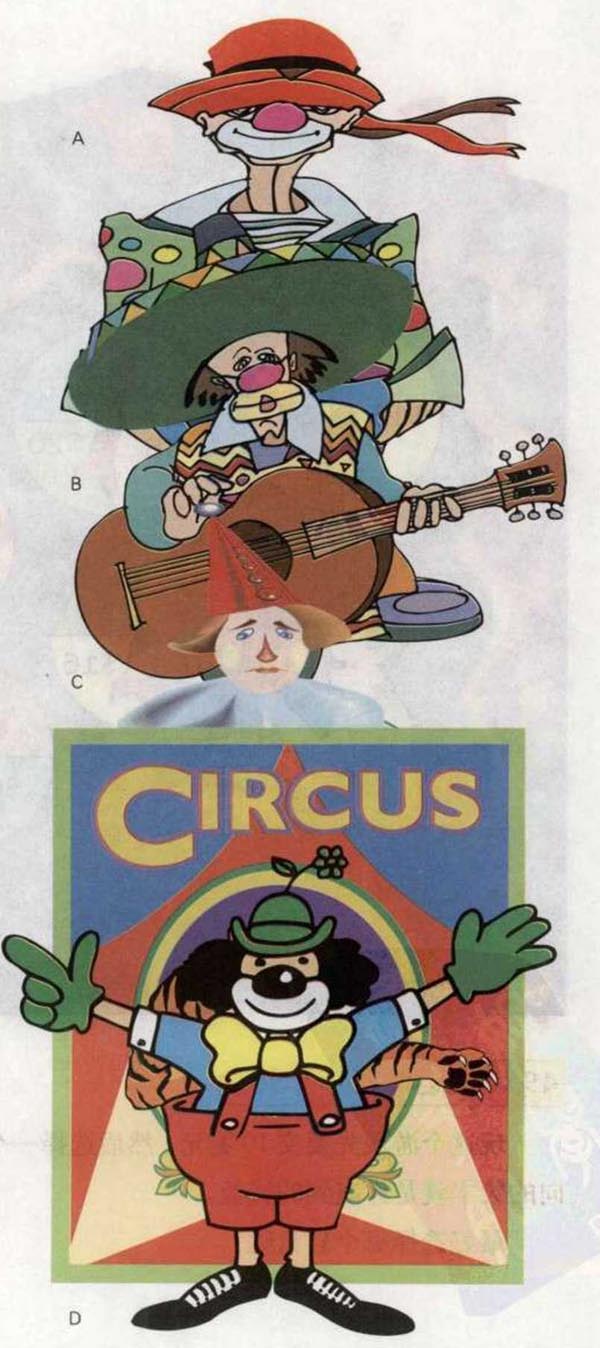 问题:如图所示,马戏团里的4个小丑前后站成一排。他们中有2个人戴着红色的帽子,另外2个人戴着绿色的帽子。这一点每个观众都知道,但是小丑自己并不知道自己头上帽子的颜色,同时他们都不允许转头向后看。哪一个小丑最先知道自己帽子的颜色?注意:其他小丑看不见小丑D,因为他身后的海报挡住了他们的视线。