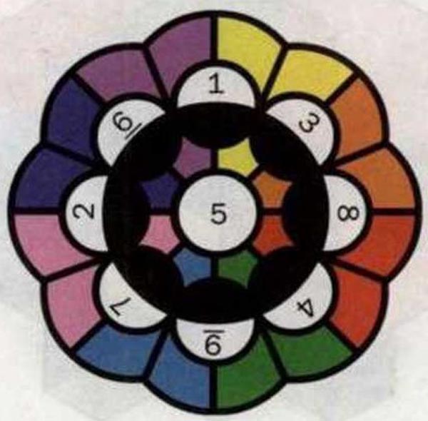 问题:将内魔轮与外魔轮以同心圆的方式咬合(结果如图1所 示)——必要时可以转动魔轮——使得任何一条直径上的数字和都相等。