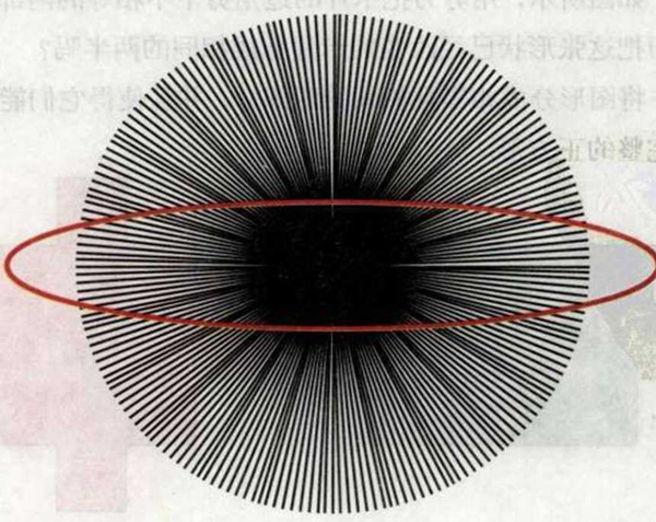 答案:开普勒当然是正确的,但是这幅图里面的椭圆并不是真正的椭圆。在它中部其实是两条平行的直线,但是在其他射线的干扰下,整个图形看上去像一个椭圆。
