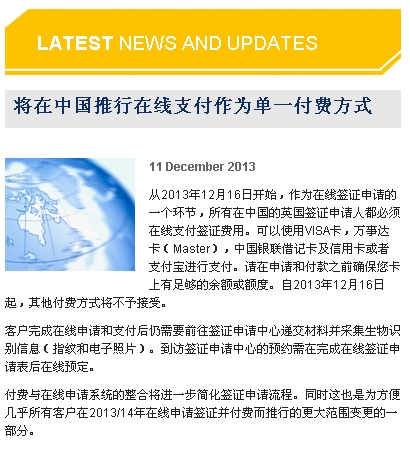 首页 > 留学签证 > 英国签证在中国推行在线支付作为单一付费方式