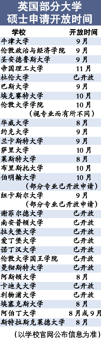 据英国留学相关信息了解,目前英国已经有大学开放了2015年的硕士课程申请,这与去年的申请开放时间相比,再次提前了两周左右的时间。英国硕士课程一般是当年9月开放申请,次年秋季入学。