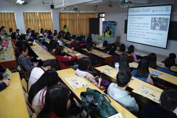 澳洲环保义工组织中国区推广干事Mandy作为分享嘉宾,为广东培正学院的同学详细介绍了CVA澳洲环保义工计划的详细内容以及分享了志愿者们以往参加的经验,同学们听得津津有味。Mandy也在宣讲会上分享了自己与志愿者们在澳洲参加环保项目的经历和视频,仿佛把同学们带到CVA的情景当中,看完后大家更是热切希望参与到志愿者队伍,成为其中一员。