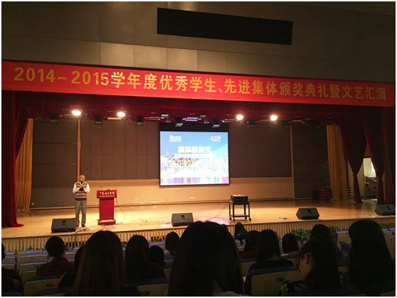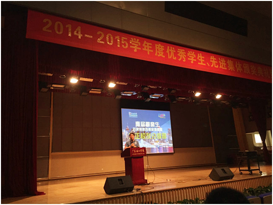 2015年12月2日星期三,侨谊留学董事总经理郭文丽小姐,应广东培正学院之邀请,作为校友身份,在礼堂隆重举办的2015年外国语学院应届毕业生动员大会以及关于就业规划指导方面的校友分享会,在会上郭总向各位即将踏出社会的师弟师妹指点一二。活动当日,同学们十分积极踊跃!首先有请广东外国语学院黄允院长上台致辞。