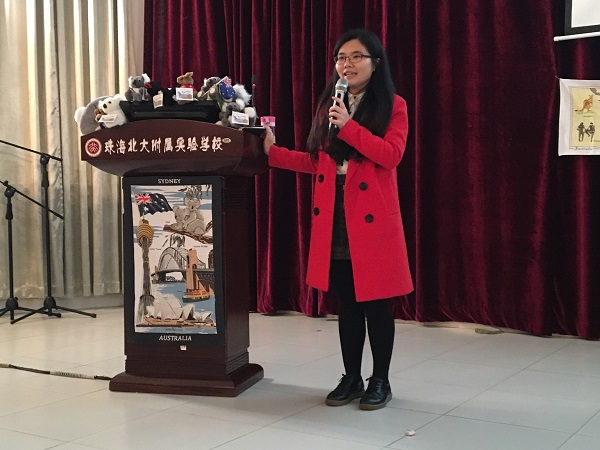 事不宜迟,珠海北大附校国际部黄主任宣布2016年珠海北大附校首季夏令营宣讲会正式开始,首先由贵校澳洲外籍教师Mr Dave上台为同学们讲解澳洲的概况,让同学们深刻认识到澳洲的环境气候、风土人情、旅游观光及澳洲八大名校的情况。
